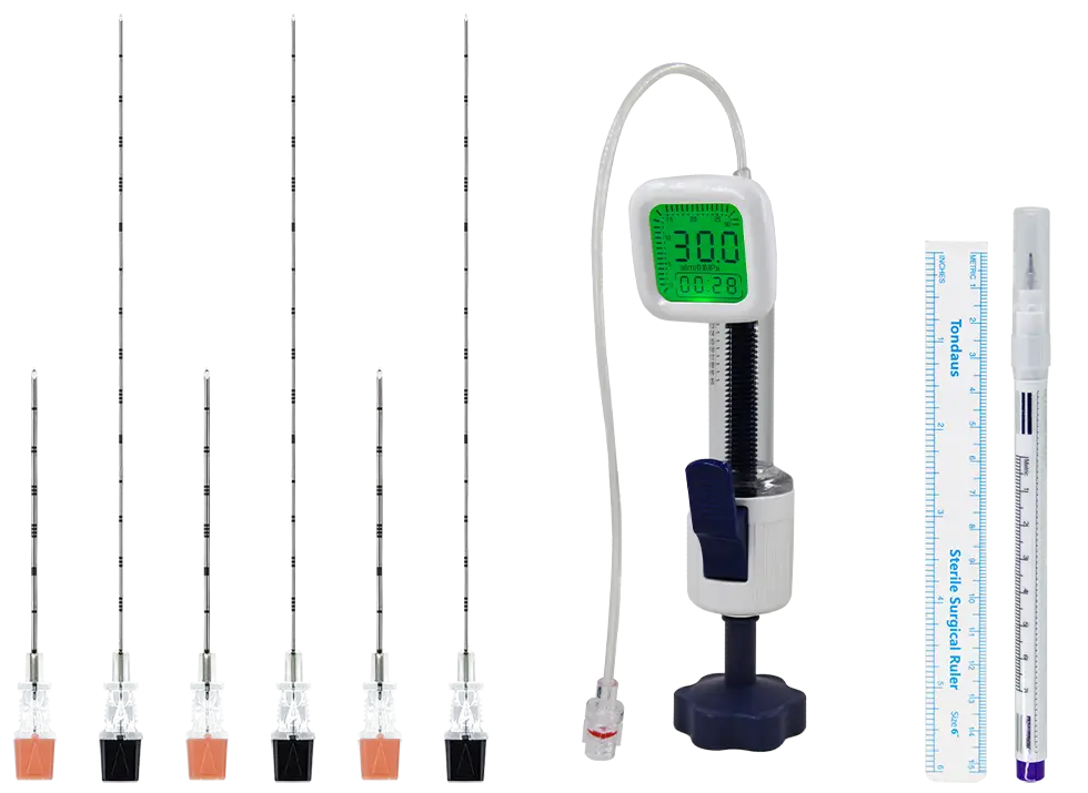 Inegavelmente uma ferramenta simples, mas poderosa. O marcador e a régua podem ser utilizados antes de realizar a punção, com o propósito de facilitar a localização para introduzir a Cânula Guia. A régua tem marcações no sistema métrico, bem como no sistema de polegadas. O marcador possui uma ponta fina de 1.0mm, por isso consegue realizar tiras finas, claras e suaves.